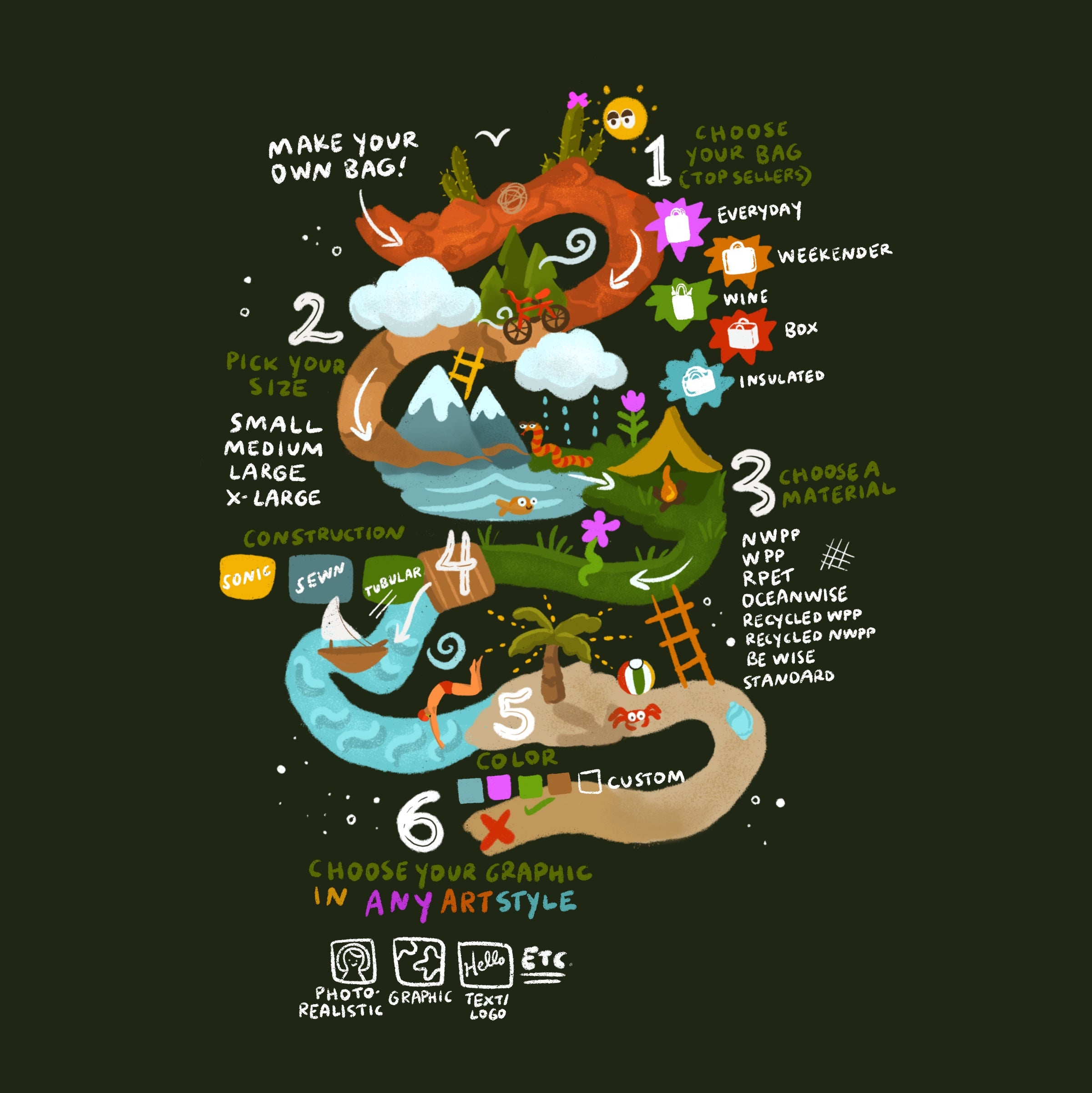 Fully customized bags in various categories