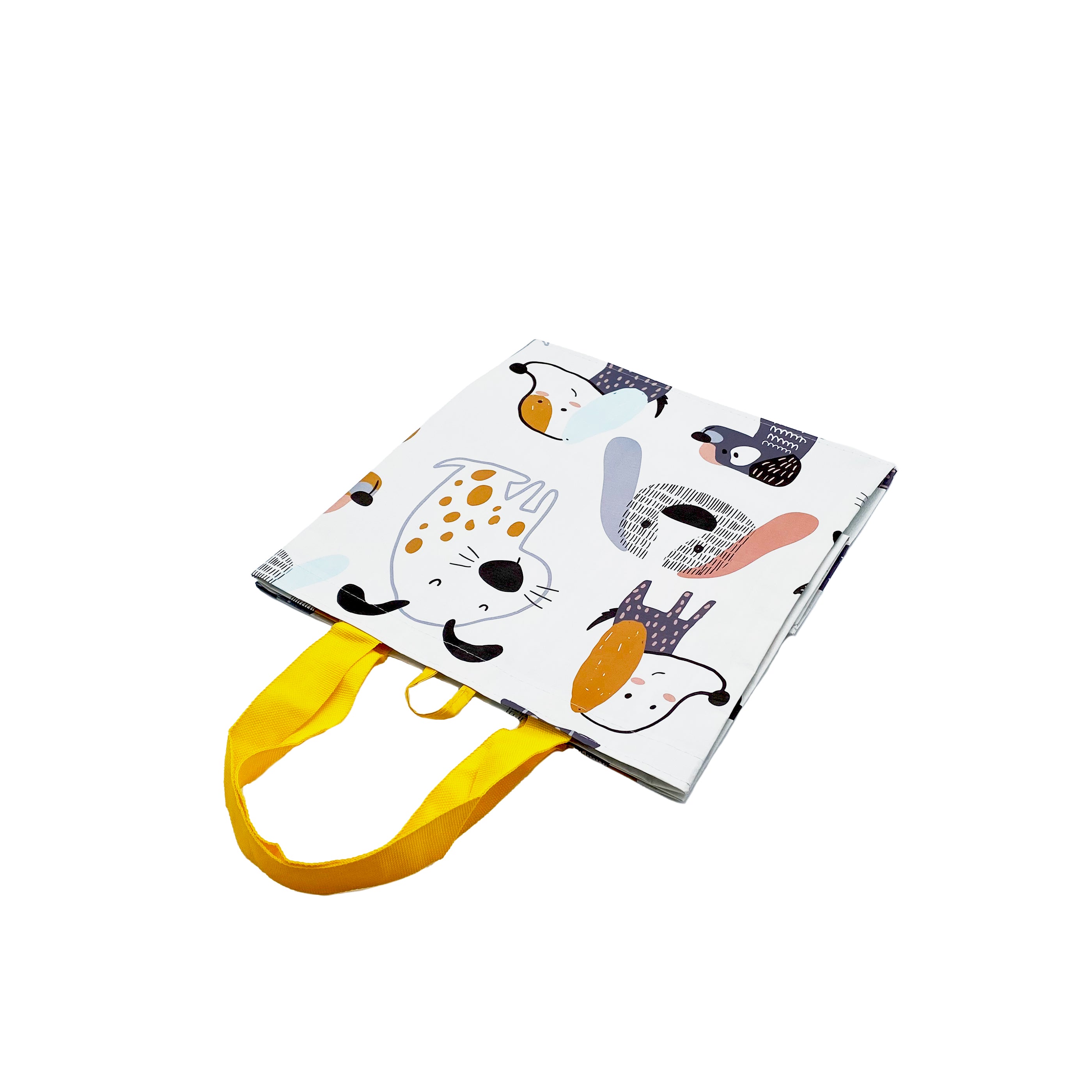 - Large capacity multi-purpose bag with reinforced handles and laminated surface that’s easy to clean. Folds flat for easy storage.
