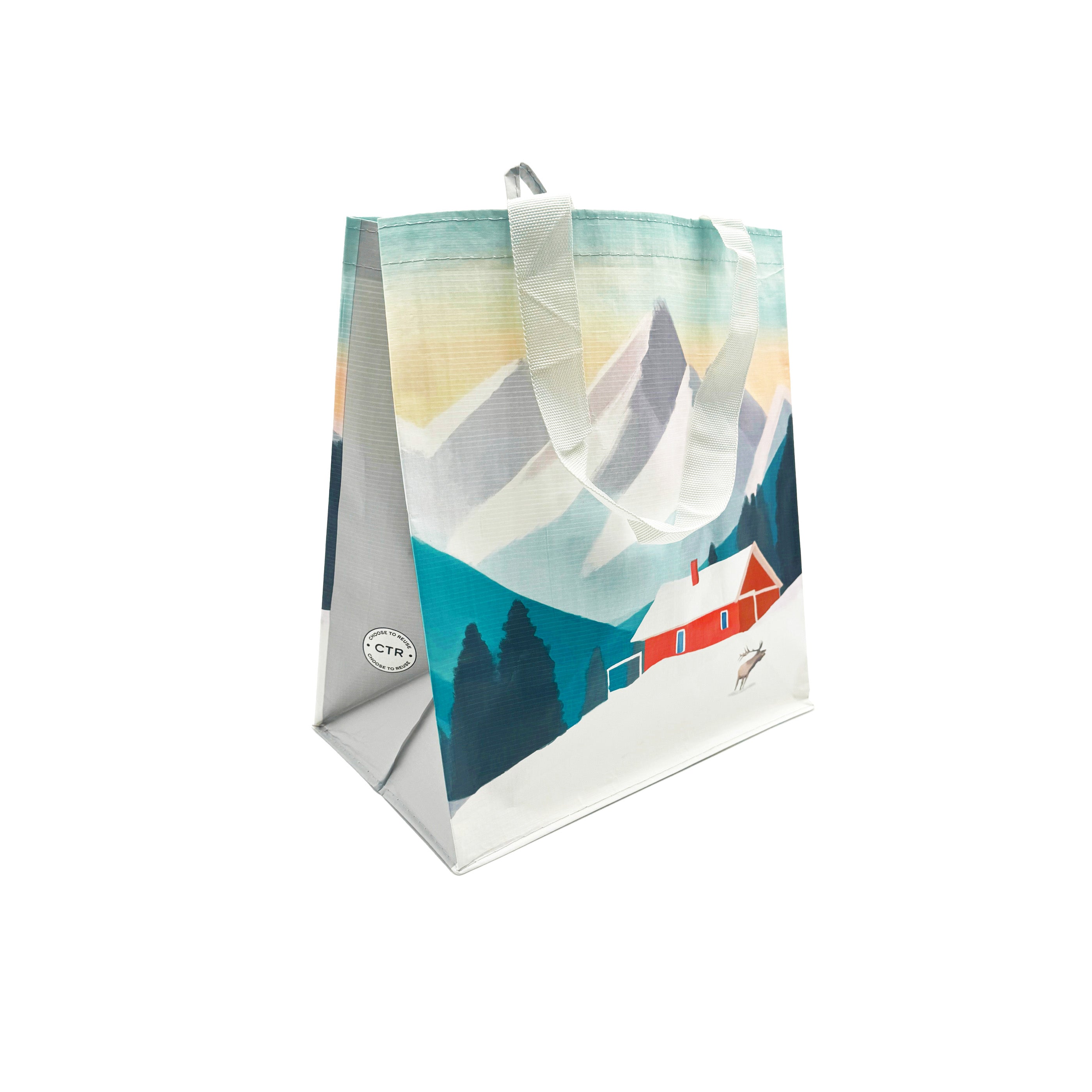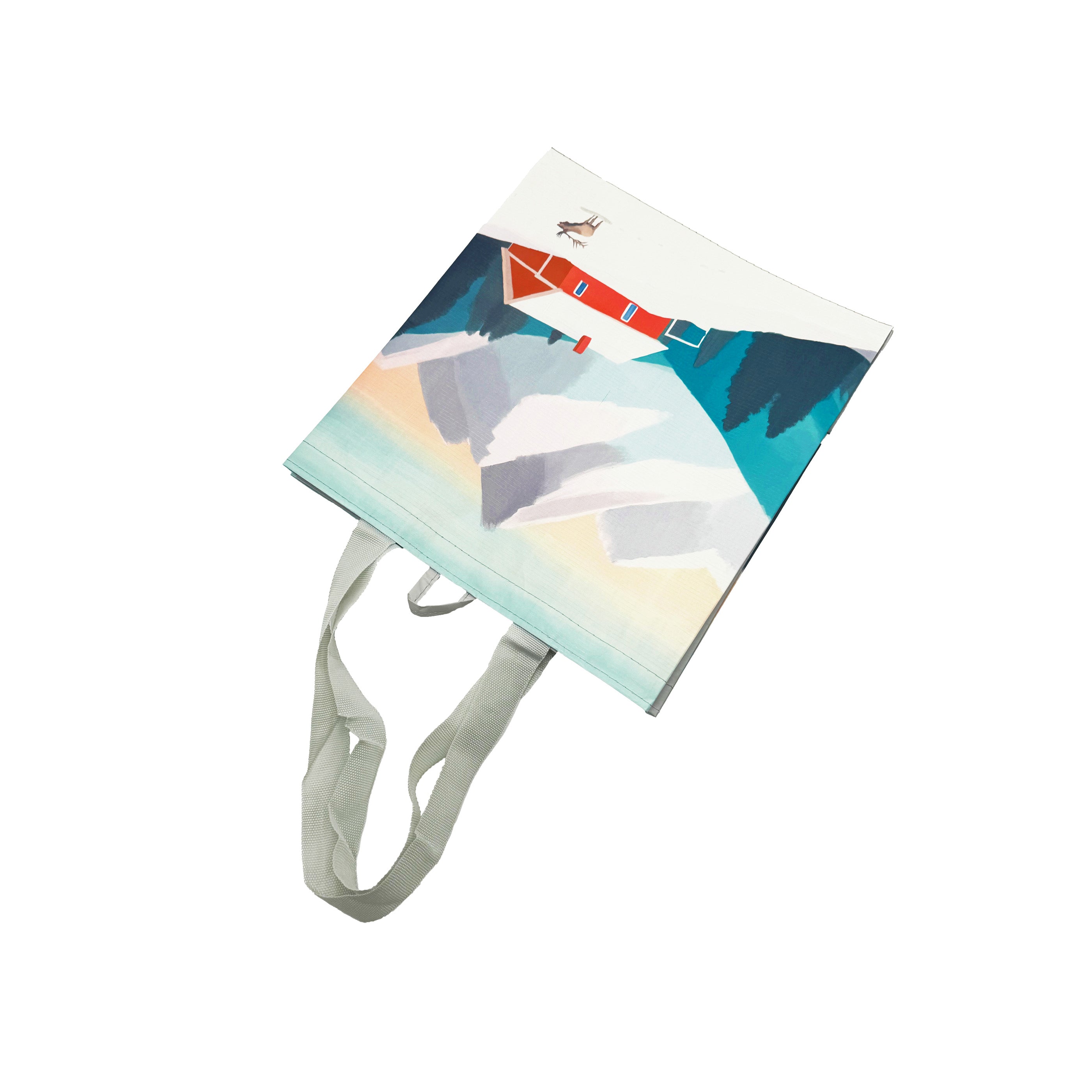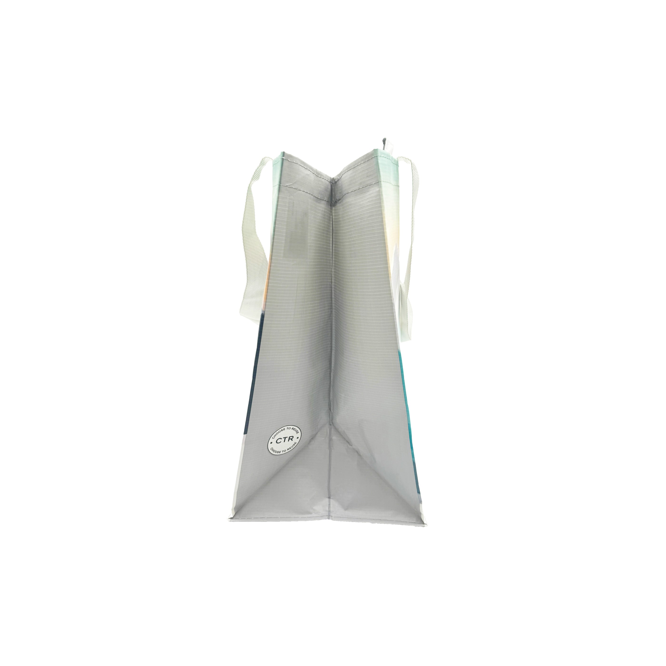 - Body: woven laminated polypropylene with 50% post-consumer recycled material
