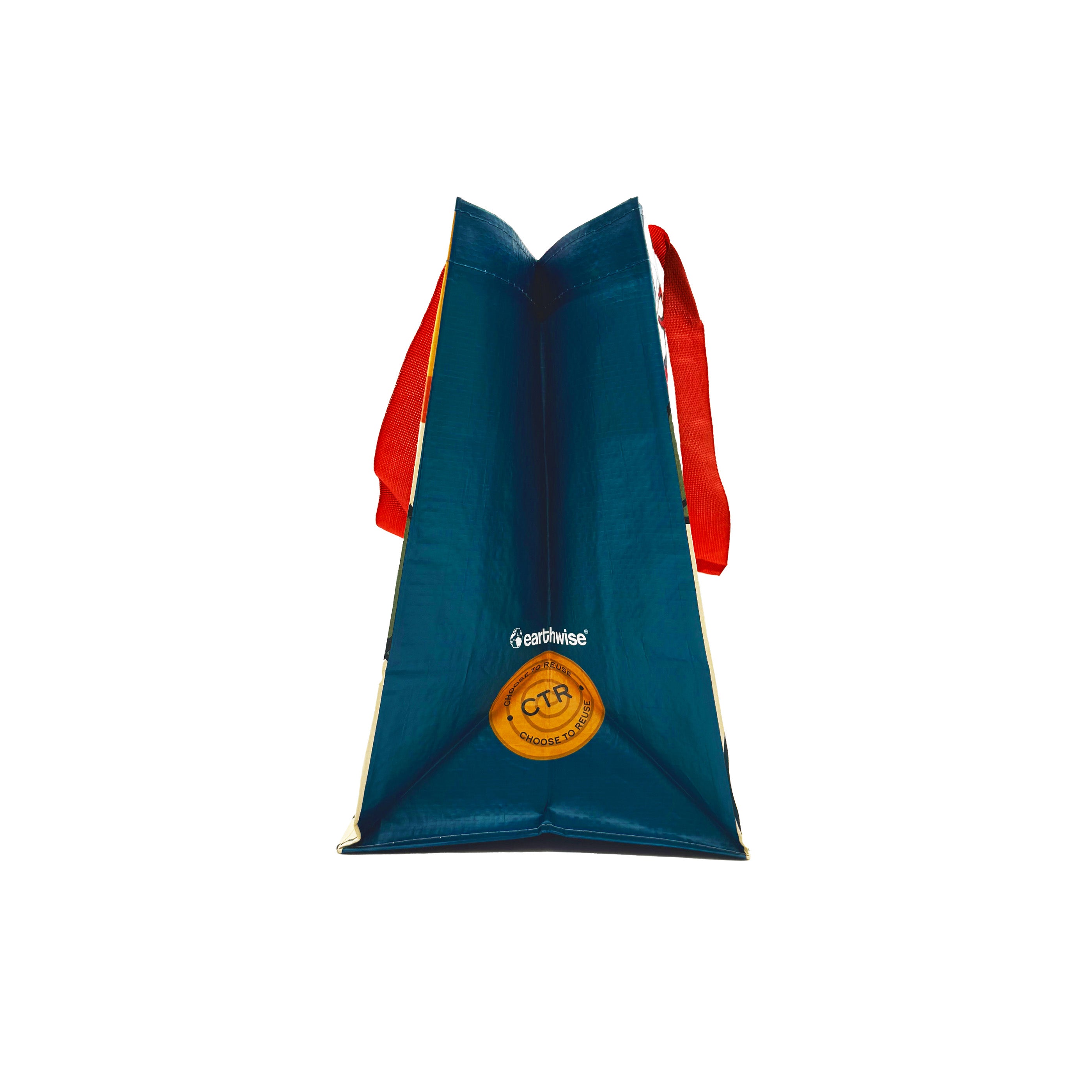 This large capacity grocery bag can hold as much as three plastic bags’ worth of groceries, and the durable woven polypropylene is built to last for hundreds of uses. This bag is ideal for grocery trips, storage, and everyday use.