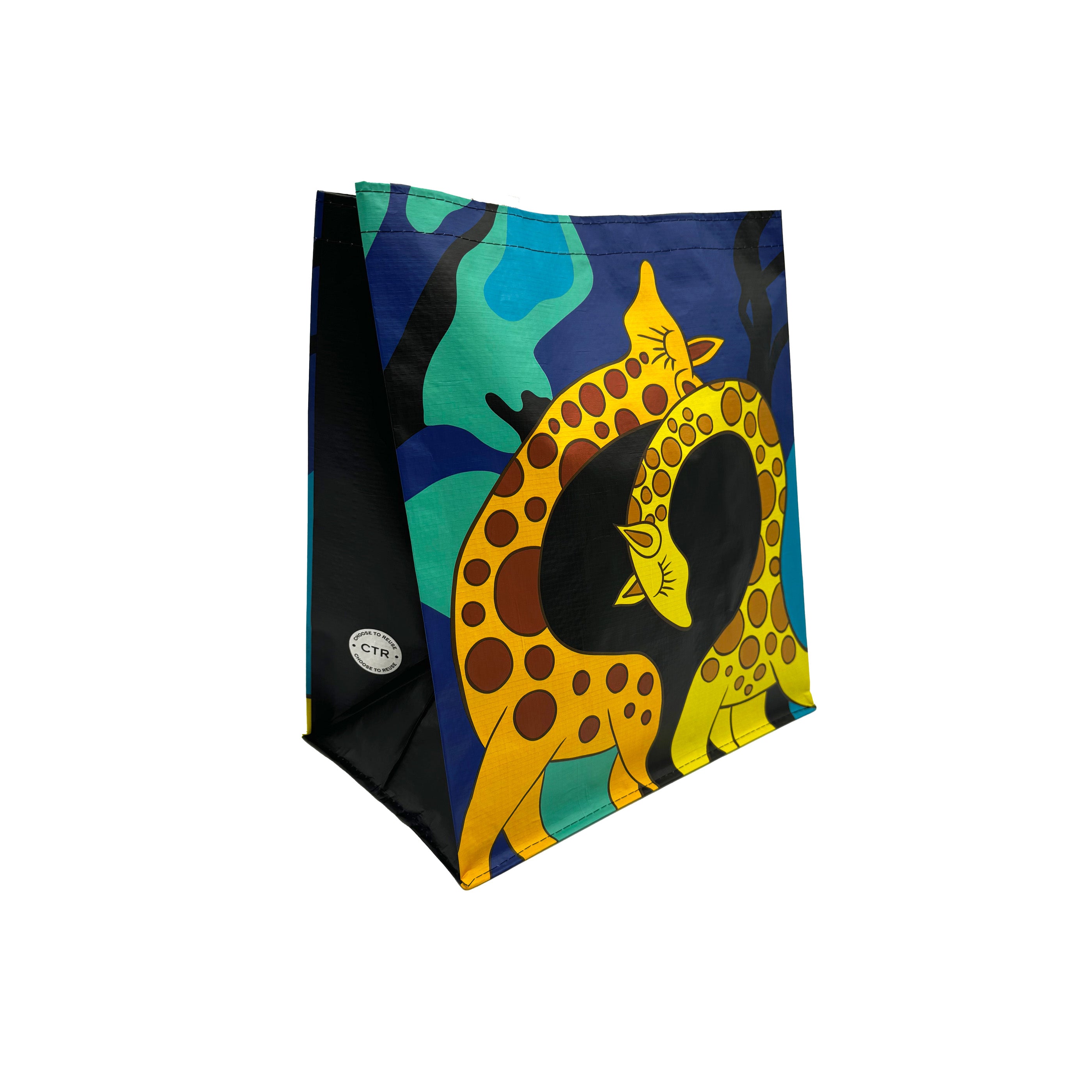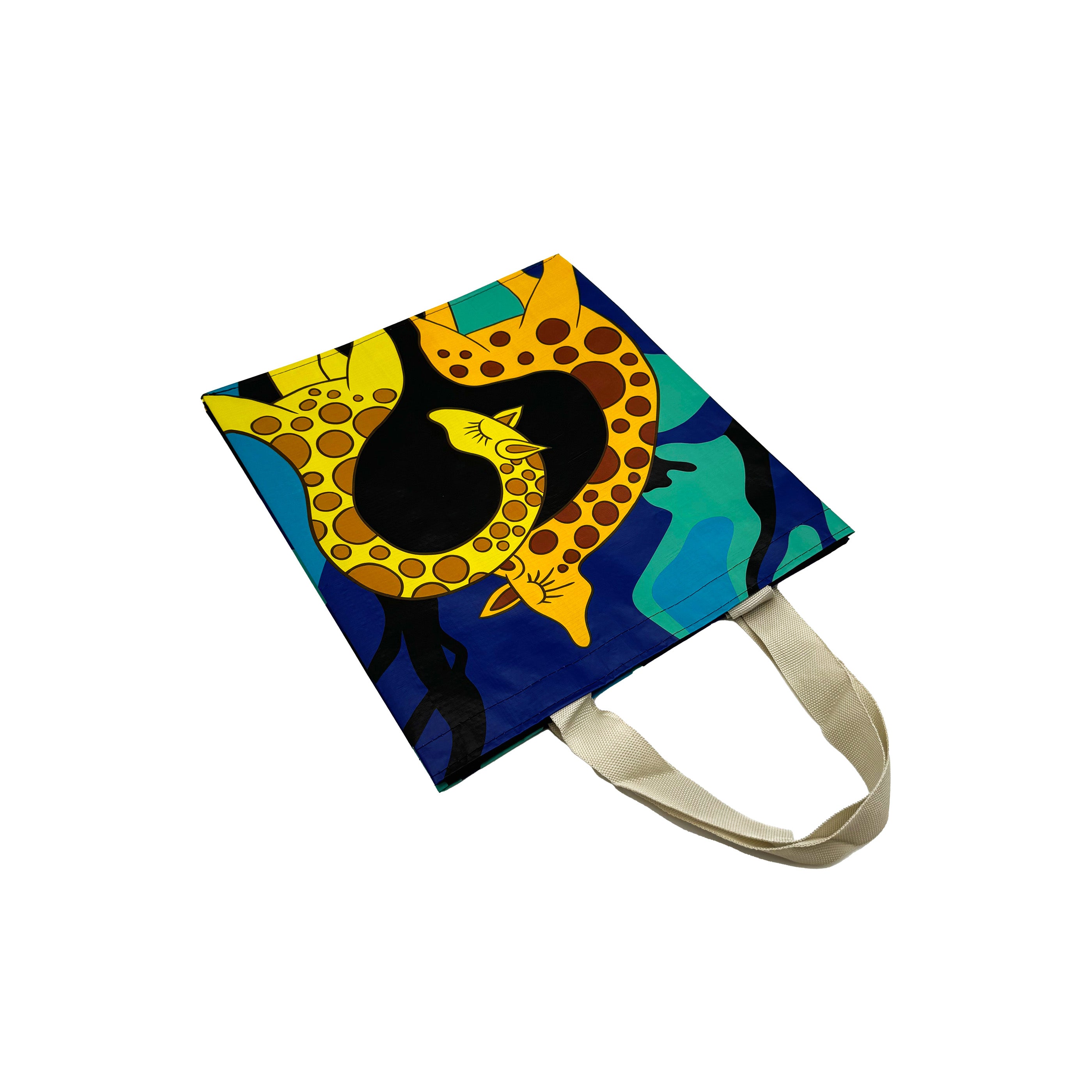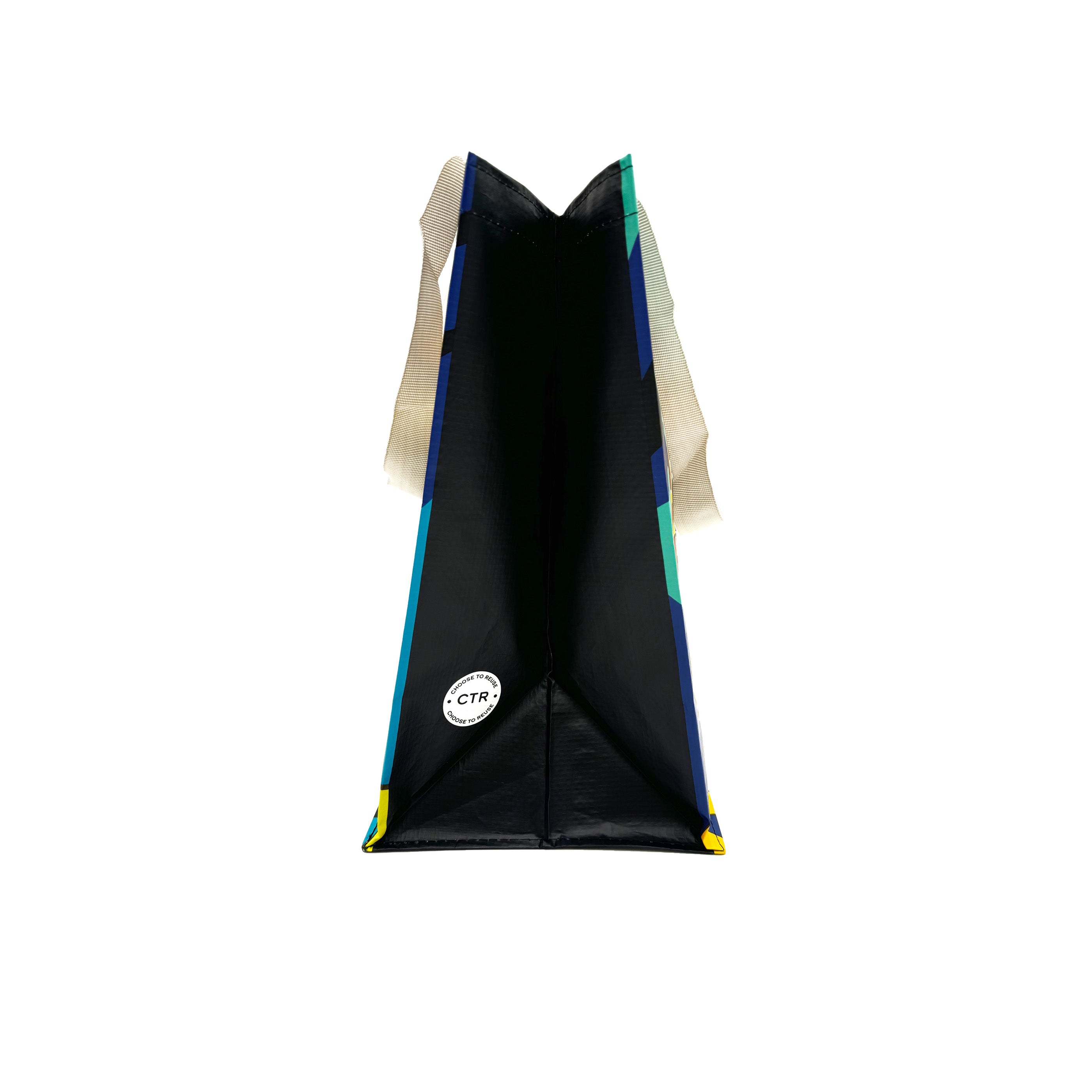 - Body: woven laminated polypropylene with 50% post-consumer recycled material