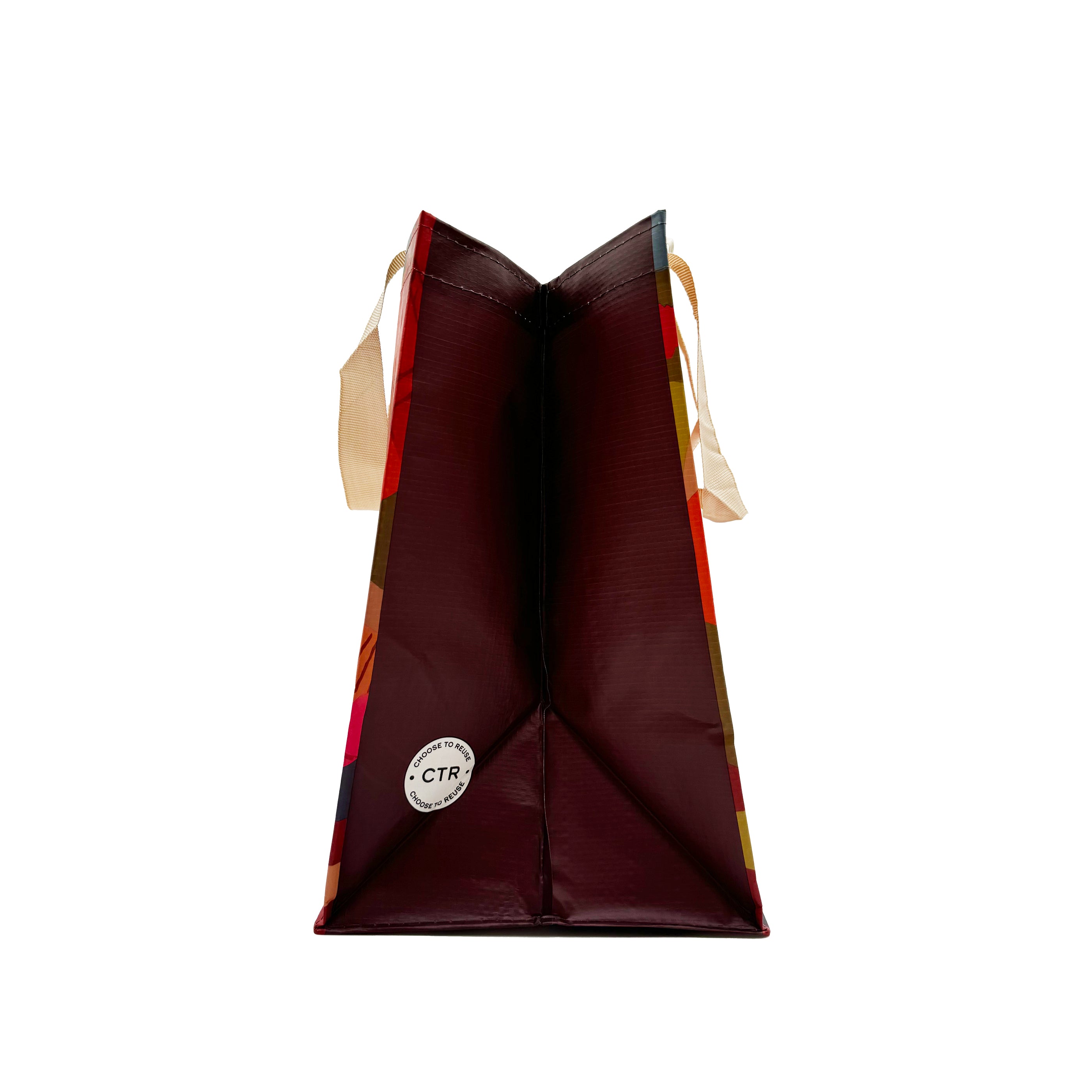 - Body: woven laminated polypropylene with 50% post-consumer recycled material